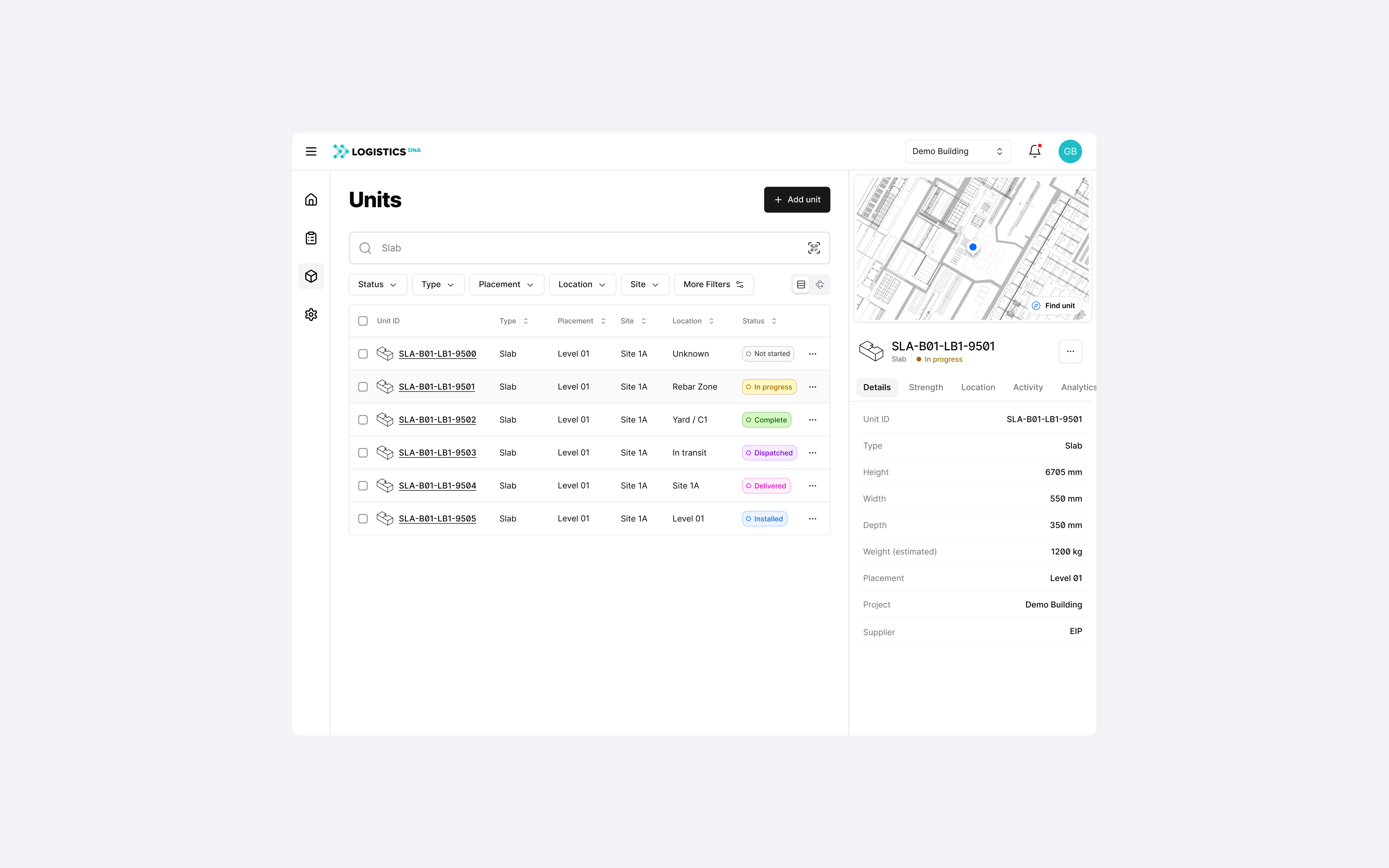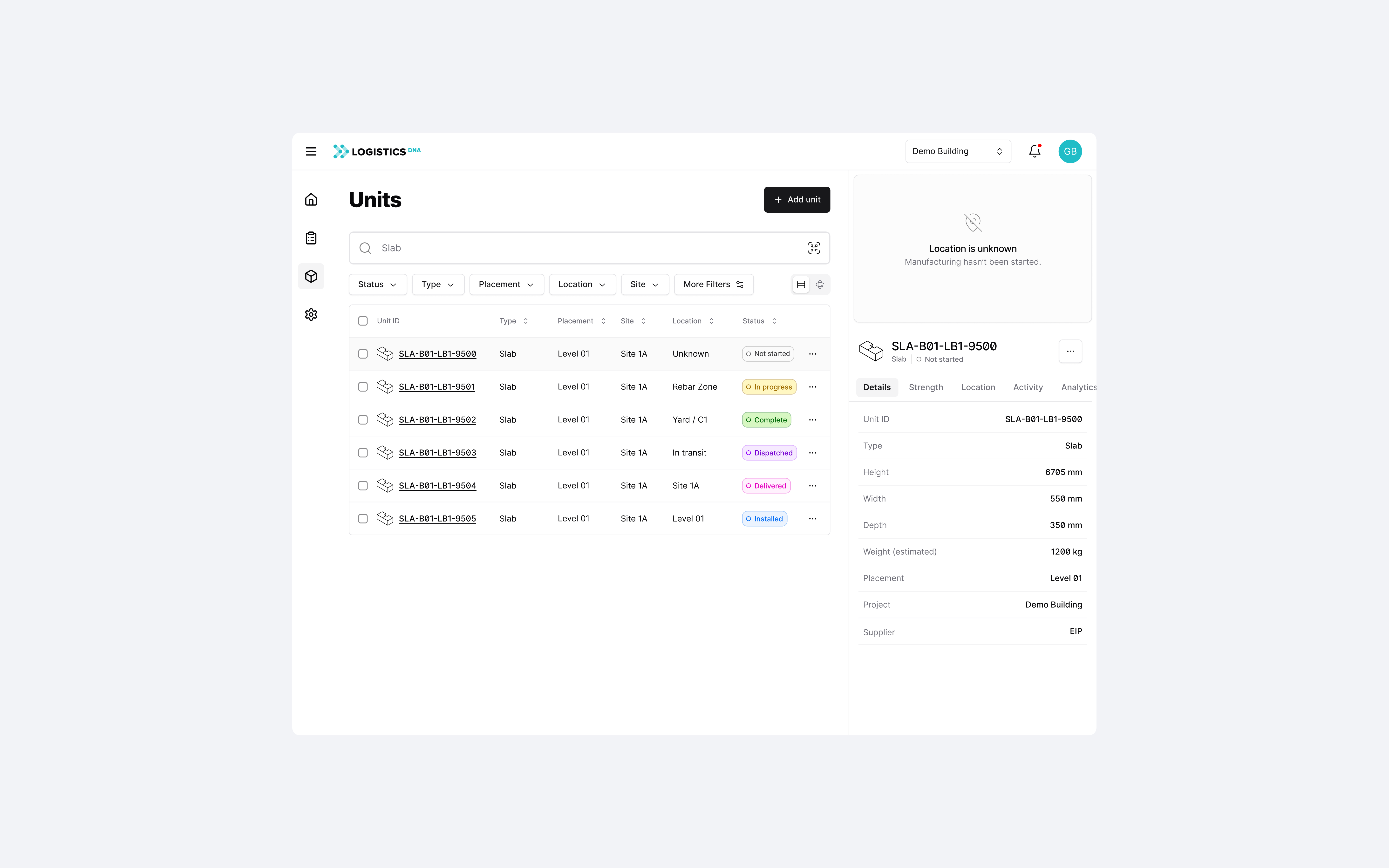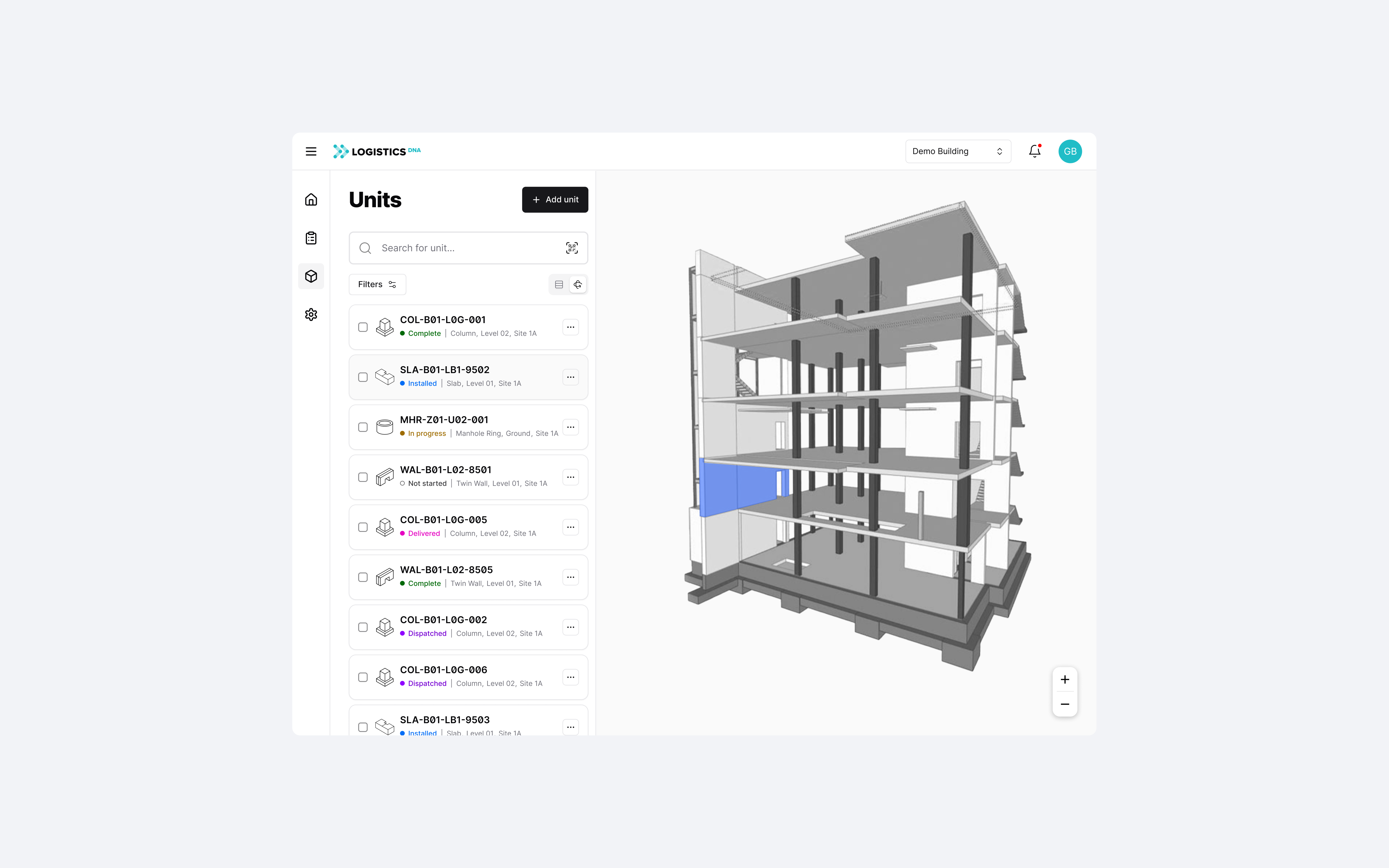 A prototype platform for the modular construction industry that tracks prefabricated concrete units from factory to installation. I led the research, design, and validation — resulting in a live MVP and paying customers within six months.